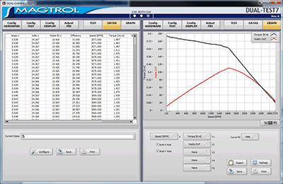 Magtrol’s DUAL TEST 7 is a state-of-the-art motor testing software for PC (Windows® XP sp3/7/8) based data acquisition. Used with a Magtrol Programmable Dynamometer Controller DSP7012, DUAL TEST 7 works on two channels independently with any Magtrol Dynamometer or In-Line Torque Transducer to help determine the performance characteristics of a motors under test. Up to 63 parameters are calculated and displayed utilizing DUAL TEST 7’s feature-rich testing and graphing capabilities.